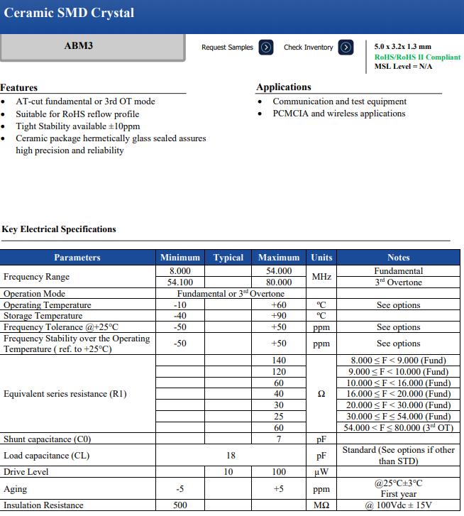 | ABM3-10.000MHZ-B4Y-T | Abracon晶振 | ABM3 | MHz Crystal | 10MHz | 2-SMD, No Lead |