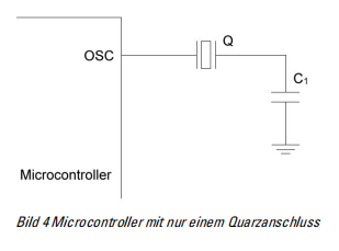 Dies erlaubt zudem sehr einfach, statt eines Quarzes einen Oszillator an OSC1 anzuschließen und OSC2 offen zu lassen.