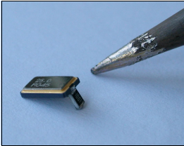 an einen der Anschlüsse des Quarzes ge lötet wird